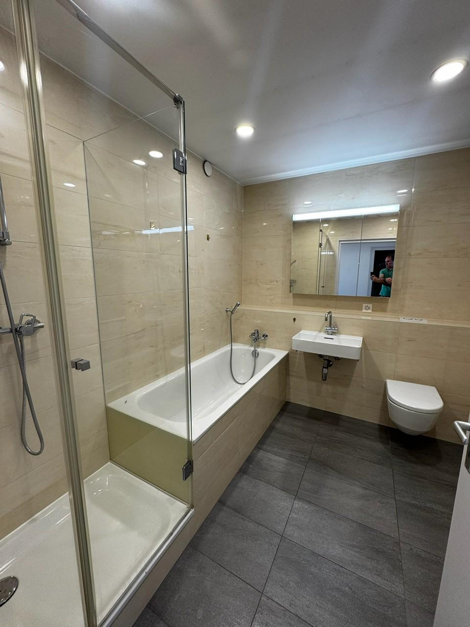 Bathroom with both shower and bathtub
