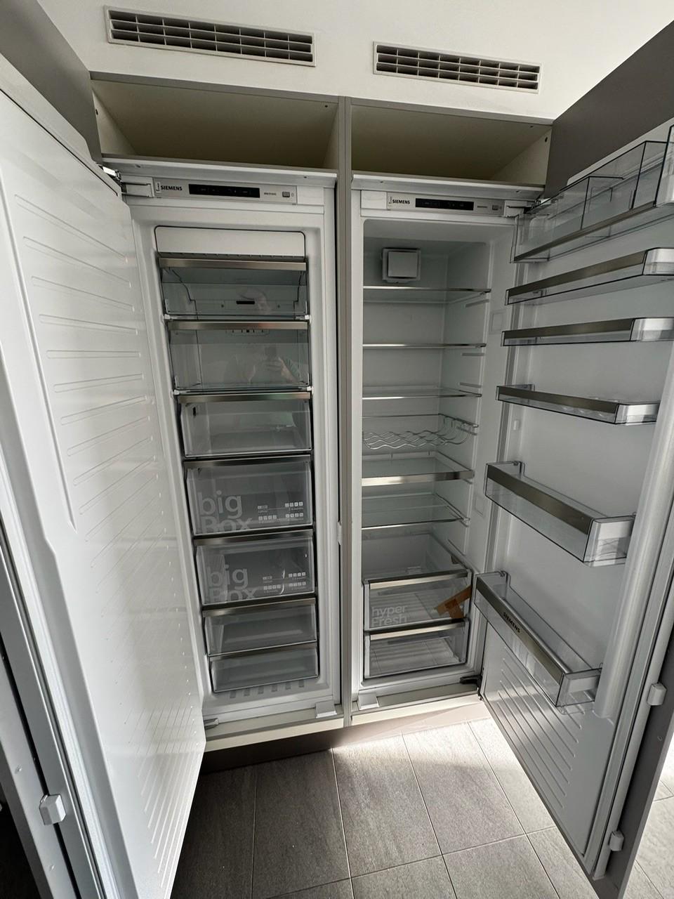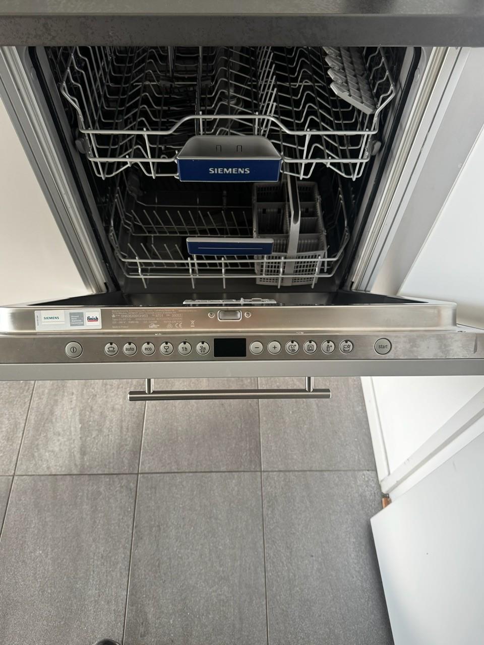Bright living room with fully equipped open-plan Siemens kitchen