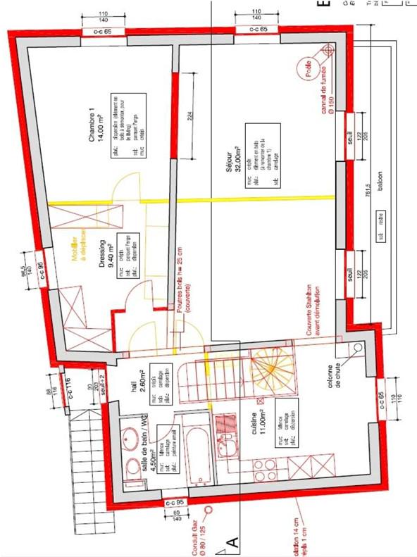 - Rez supérieur : une vaste cuisine, un séjour/salle à manger équipé d’un poêle et donnant accès à un balcon sur toute sa longueur, une chambre, un dressing et une salle de bains.