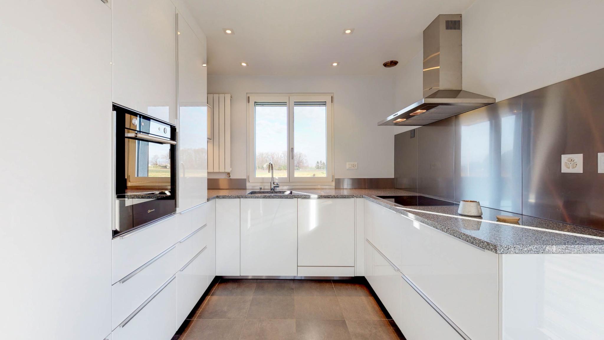 La maison est entourée de champs, ce qui garantit une tranquillité absolue. Il y a également un garage et, au sous-sol, une buanderie, une pièce supplémentaire ainsi que la chaufferie.